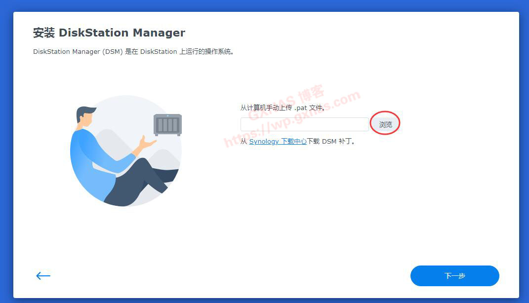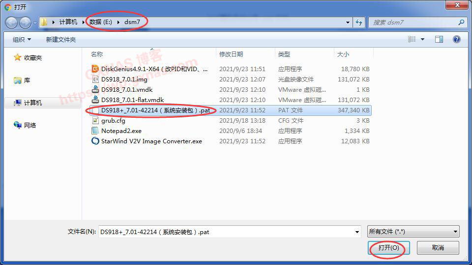 57、找到之前下载的  DS918+_7.01-42214(系统安装包).pat  这个安装包文件,打开;