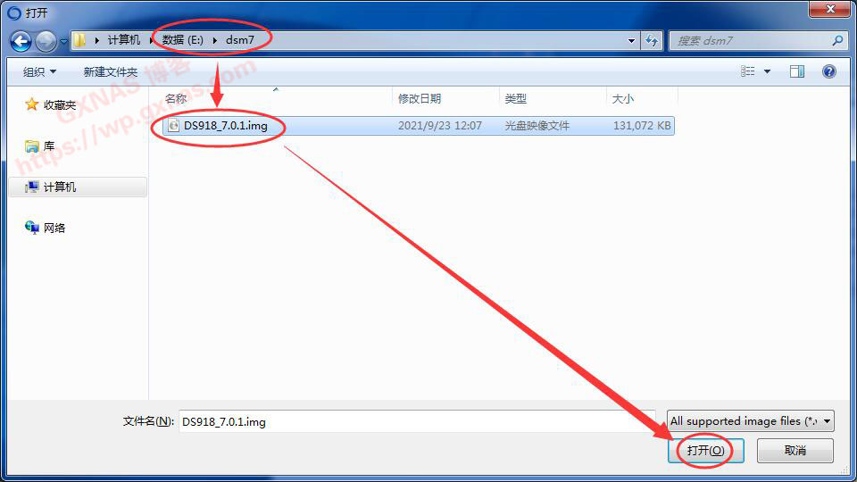 4、进入第1步建立的文件夹,找到DS918_7.0.1.img文件,打开;