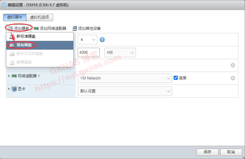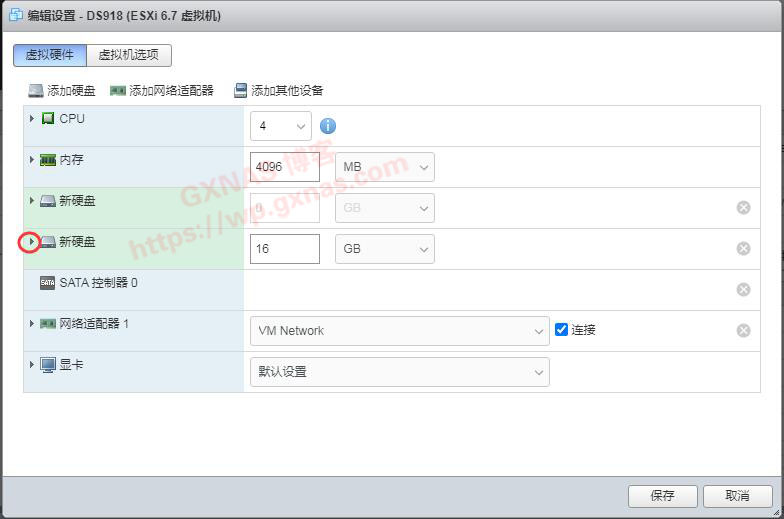 41、接下来要给群晖虚拟机添加存储硬盘,如果是添加虚拟硬盘选新标准硬盘(如果需要添加RDM直通硬盘或者SATA控制器的,请点“保存”,然后下拉到文章末尾查看补充说明)