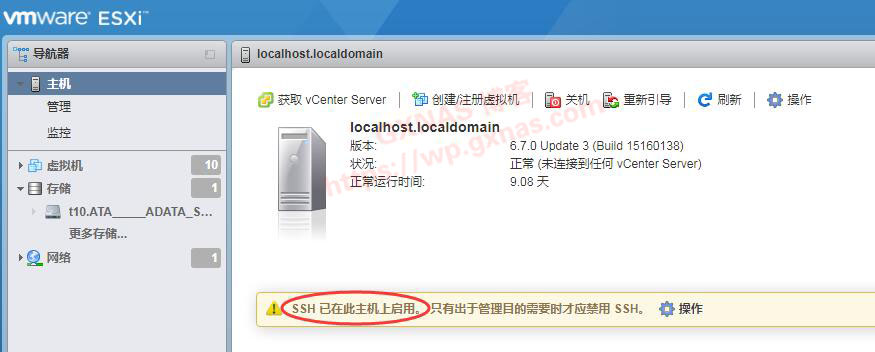 5、此时ESXI首页会显示“SSH已在此主机上启用”的字样;