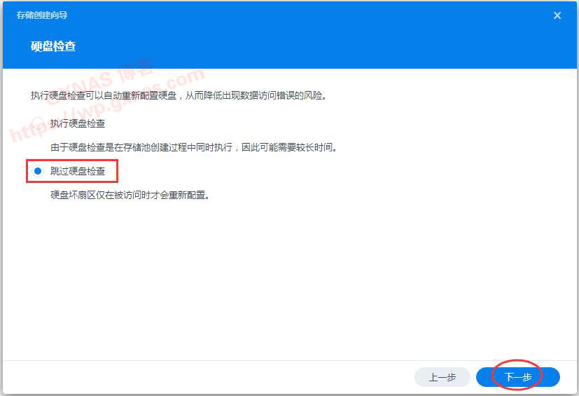 75、跳过硬盘检查(如果你组的是RAID,强烈建议勾选“执行硬盘检查”,以免硬盘出问题引起RAID损毁),下一步;