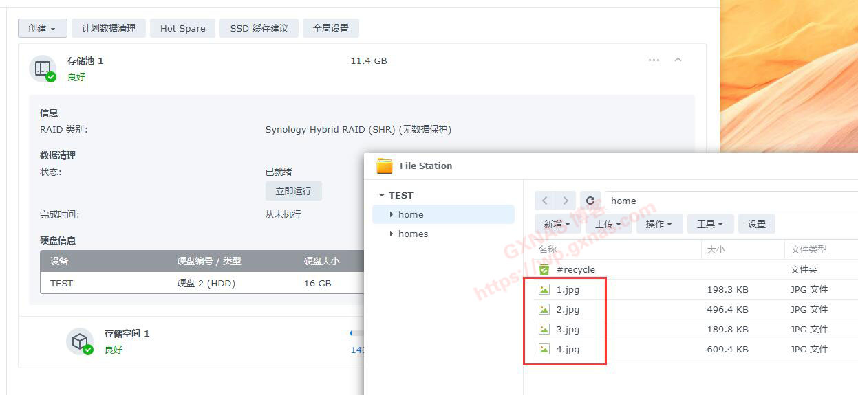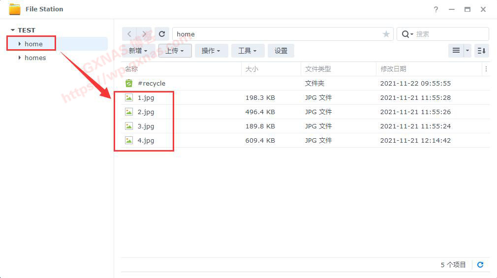 2、打开File Station,在home里面看到有4个图片的文件;