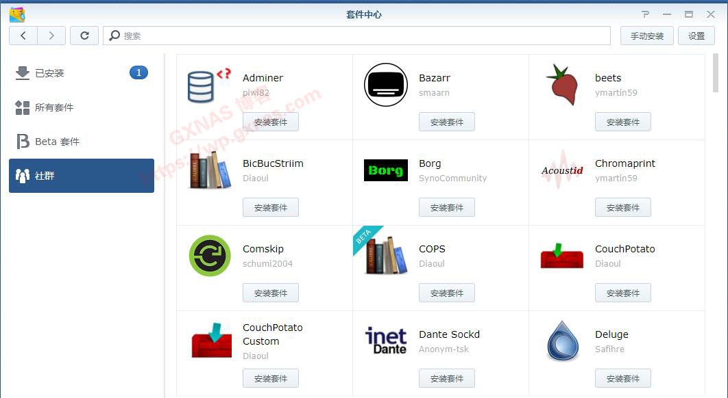 18、再回到群晖的套件中心,在套件中心-设置-来源,新增,加入第三方套件的地址,确定;