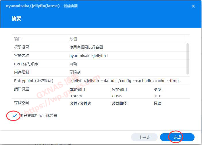 9、在“启用自动重新启动”和“创建桌面快捷方式”处打勾,网页上的http地址后面加上一个冒号和端口号,Jellyfin默认端口为8096,由于我安装的EMBY使用了8096端口,所以我这里用的端口号改成用18096;