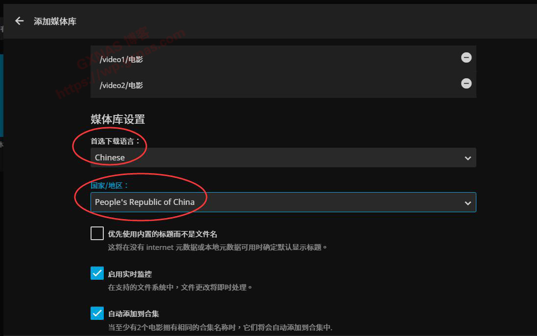 2、如果需要设置自动下载字幕,可参考教程:https://wp.gxnas.com/11406.html
