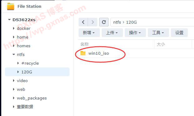 18、回到File Station,找到刚才建立的120G文件夹,点菜单上的刷新图标;