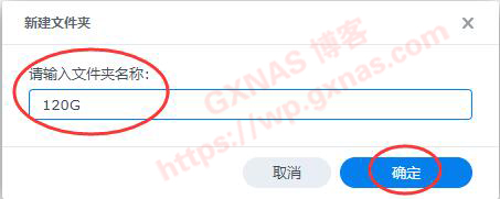 8、由于我挂载的是一个120G的NTFS硬盘,为了区分硬盘,所以文件夹名称我写“120G”,确定;