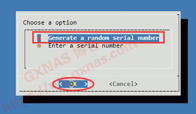7、选择“Generate a random serial number”回车的话,编译系统会随机生成一个序列号,如果你想使用自定义的序列号,可以选择“Enter a serial number”回车后输入你想要使用的序列号,我这里使用随机生成;
