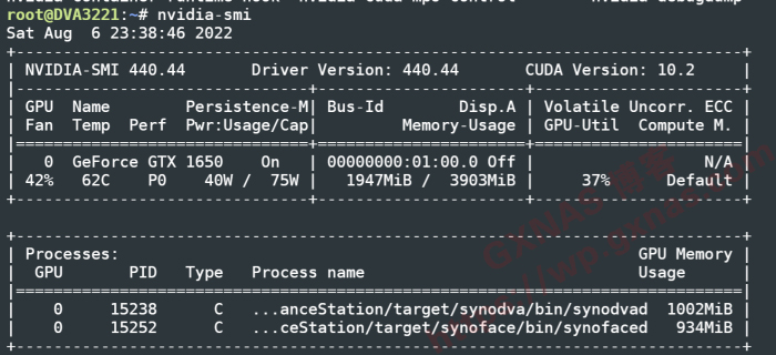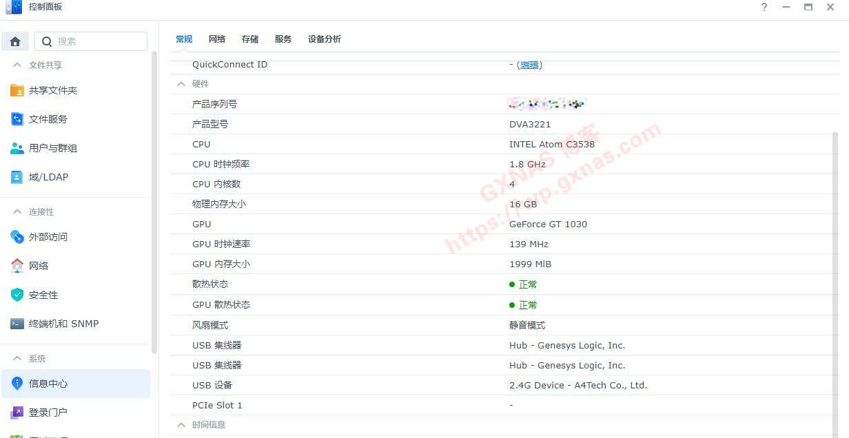 32、网友提供的使用GT1030独显安装DVA3221群晖系统正确识别的界面(需要安装N卡驱动套件);