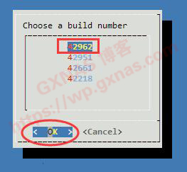 5、选择你想要编译黑群晖的版本,我选择的是最新的7.1.1-42962版本,用方向键选择以后按回车键;