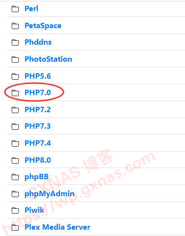 2、找到你想要下载的套件名称,比如我要下载PHP7.0,就点“PHP7.0”这个文件夹;