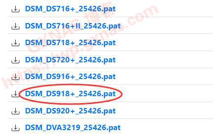 8、这里会显示出该版本所有型号的安装包,找到我要下载的DS918+_25426.pat,点文件就可以下载了。