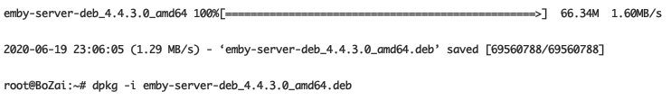 这样就下载了 EMBY 的安装包,然后我们根据提示,输入官方的提示代码进行安装。