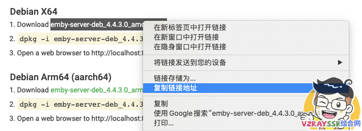 我们鼠标右键 ,在Debian X64 后面的软件包上面 “复制链接地址”