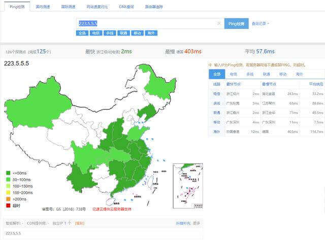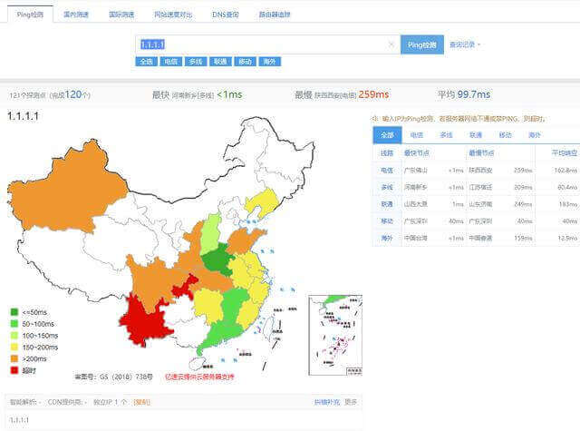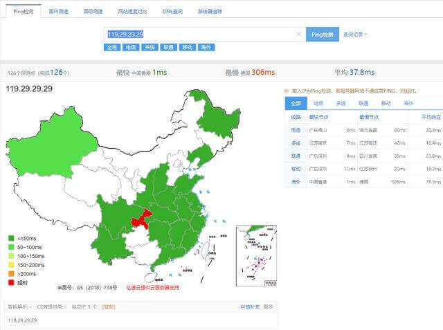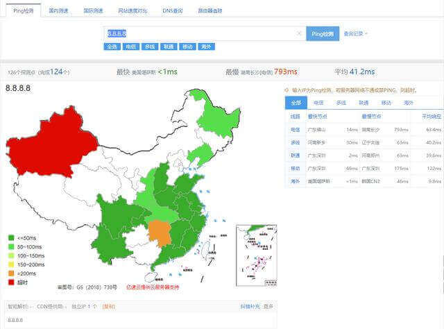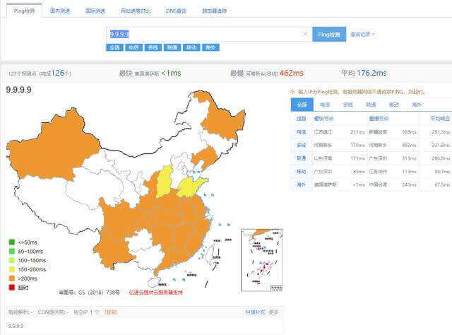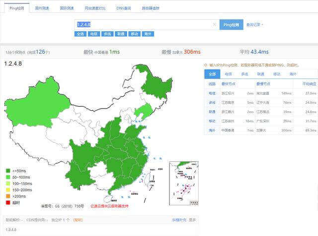 PS:以上测试均使用 http://ping.chinaz.com 测试工具
