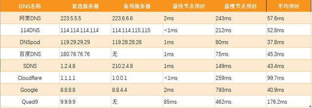 1、表现最好的为DNSpod的119.29.29.29,解析快速稳定,应为首选。