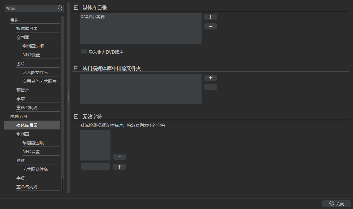 媒体库目录,也就是添加你需要管理的影片文件夹目录,和EMBY一样,从扫描媒体库中排除文件夹,也就是在这个目录下的子文件夹,你想忽略它,不想添加进到TMM里面进行管理,在这里添加那个子目录即可,