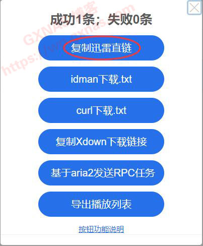 4、在弹出的窗口中,点一下“复制迅雷直链”;