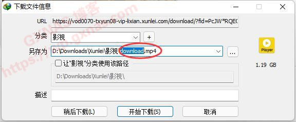 8、改好文件名,点“开始下载”;