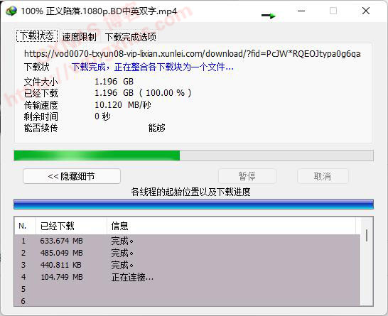 10、下载即将完成,分块下载的文件正在合并中;
