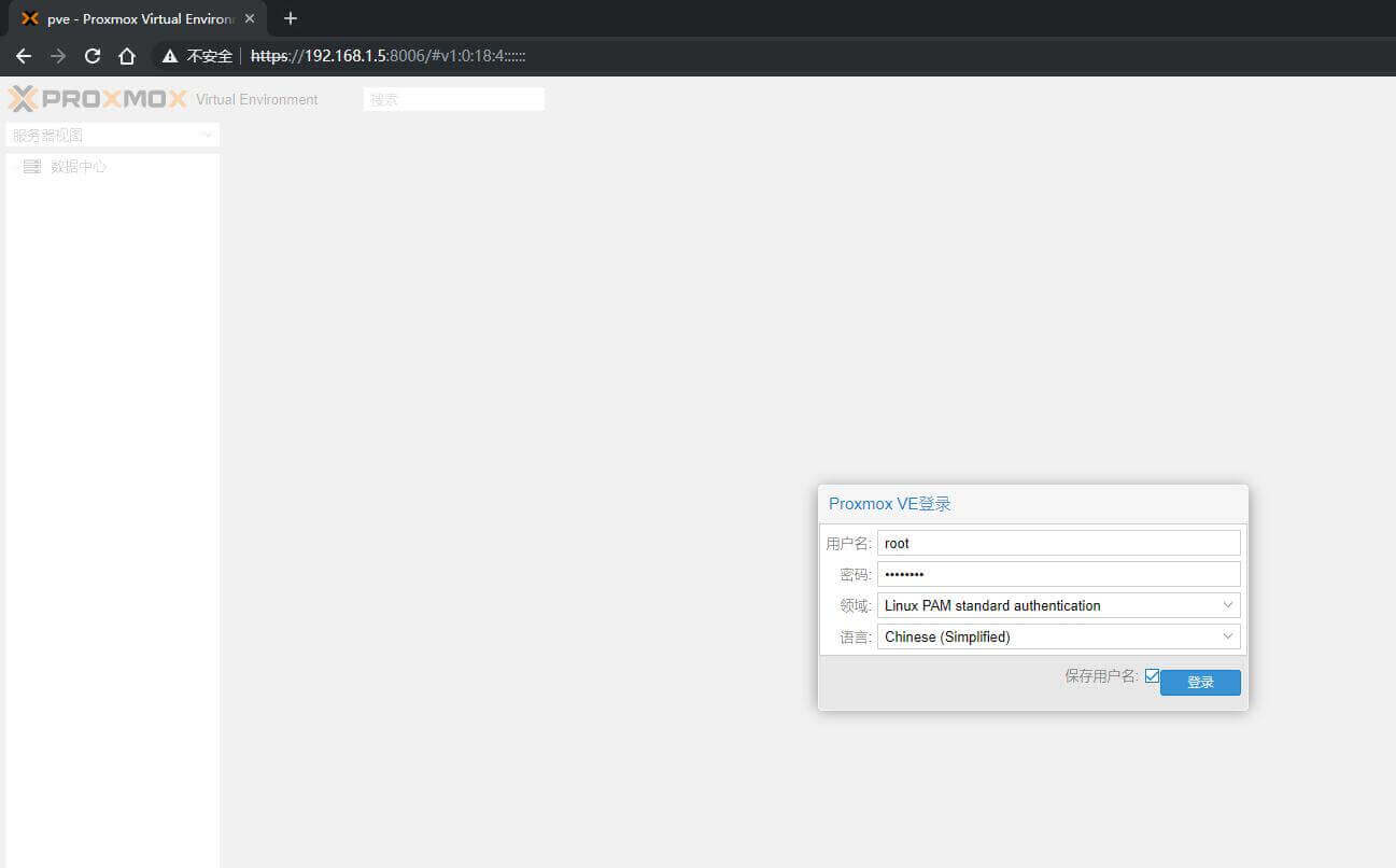 比如我的是:https://192.168.1.5:8006(记住是https而不是http)