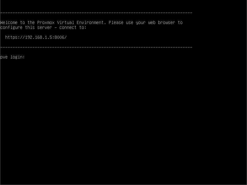 启动以后就会出现登陆信息提示,也就是控制台的URL访问地址,你可以用另外一台局域网内的电脑输入这个URL即能访问PVE的控制台: