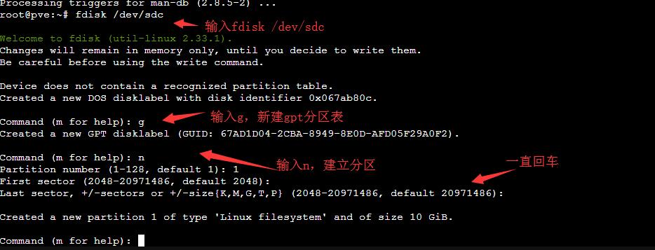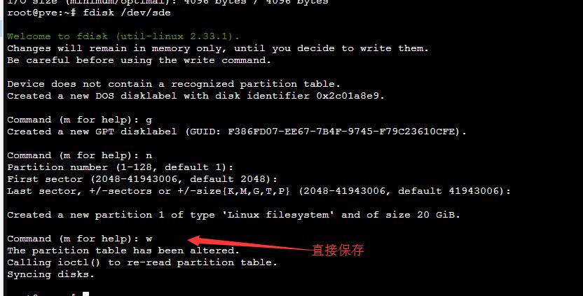 root@pve:~# fdisk /dev/sdeWelcome to fdisk (util-linux 2.33.1).