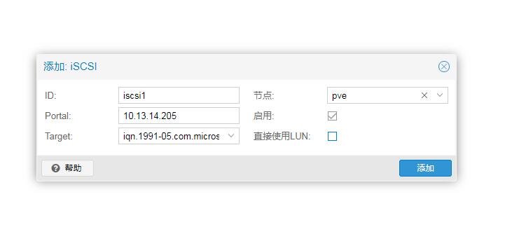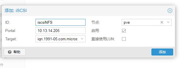 iscsi磁盘,挂载系统之后,创建lvm,然后pve面板添加就行,或者直接创建分区,然后挂载到一个目录下,再去pve面板添加这个目录就ok。