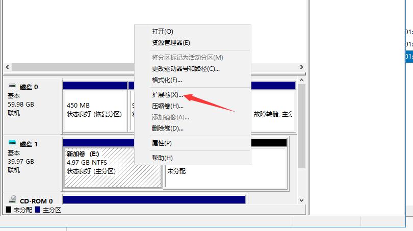 3、对分区的操作十分简单。把iscsi挂载到windows下,直接通过windows的磁盘管理就可以进行分区操作,比如扩容,缩减空间。