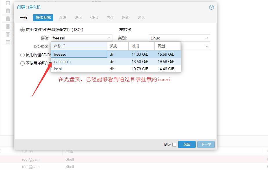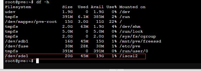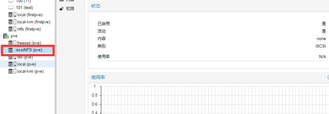 注2:按照我发表的另一篇文章 Proxmox VE磁盘/目录详解,并且安装第二个硬盘,修改ISO/虚拟机存放位置(挂载第二张磁盘)的操作,理论上也同样使用于iscsi。就是挂载iscsi磁盘之后,进入pve节点——磁盘,可以看到磁盘,并且初始化,但是我这篇文章在撰稿时,识别不了。百思不得其解,于是乎有了下面的手动挂载磁盘。导致,开机不能自动挂载。坑!