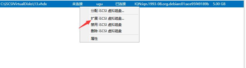 我在进行这步操作之后,发现找不到扩容之后的iscsi磁盘,删除原来的磁盘分配,重启iscsi服务器,再分配磁盘就行了。使用存储服务器的可以忽略