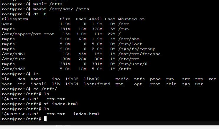 fdisk -l //查看5G磁盘mkdir /ntfs2 //创建挂载点mount /dev/sdd2 /ntfs //挂载操作