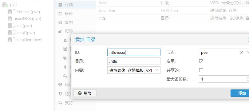 注1:这节原理就是挂载iscsi磁盘到一个文件夹下,然后通过pve挂载目录,但是我发现有一个缺陷就是不能开机挂载。可能我技术不行,lvm到是可以开机自动挂载。