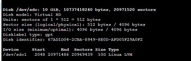 再次在终端输入fdisk -l,可以查看磁盘已经分好区了