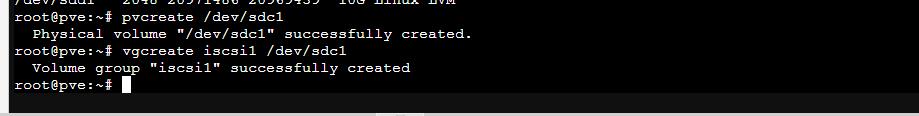 pvcreate /dev/sdc1 创建pv vgcreate iscsi1 /dev/sdc1 创建一个名为iscsi1的vg