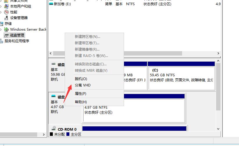 因为windows的iscsi利用的是vhdx,所以我这里不需要额外的去找个windows来挂载,直接禁用这个分配(不禁用的话,是无法编辑vhdx的),然后去编辑vhdx就行