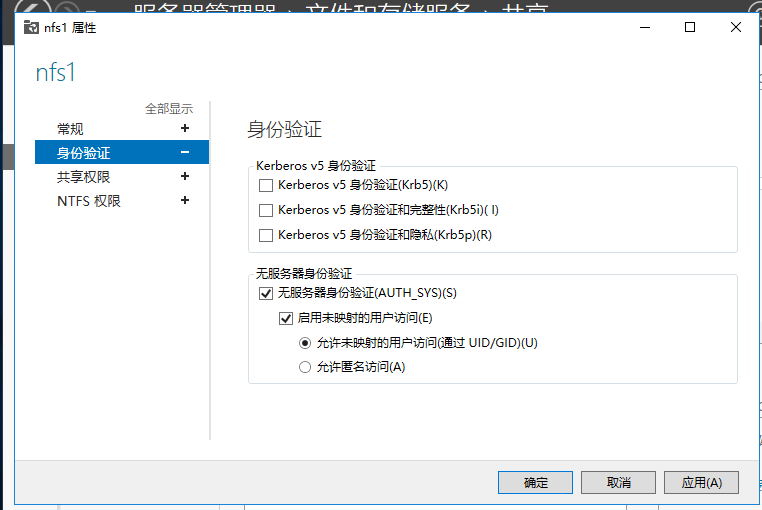 这里提示权限问题,应该是server2016权限问题,我把这里设置为允许未映射的用户访问。