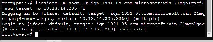 iscsiadm -m node -T iqn.1991-05.com.microsoft:win-21mqolqacj8-ugu-target -p 10.13.14.205 -l