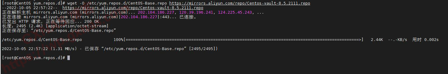 wget -O /etc/yum.repos.d/CentOS-Base.repo https://mirrors.aliyun.com/repo/Centos-vault-8.5.2111.repo