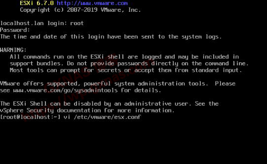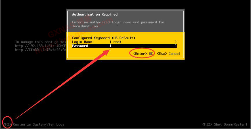 按一下Alt + F1,此时会显示ESXI的Shell状态下登录界面;