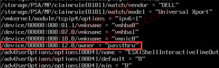 找到 /device/00000:000:12.0/owner = "passthru"(此处不要照搬,红色字为你的管理网口的ID,我这是12,每个人使用的硬件环境不同,ID可能不一样);