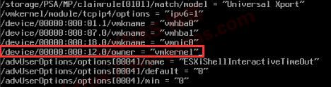 改成 /device/00000:000:12.0/owner = "vmkernel";
