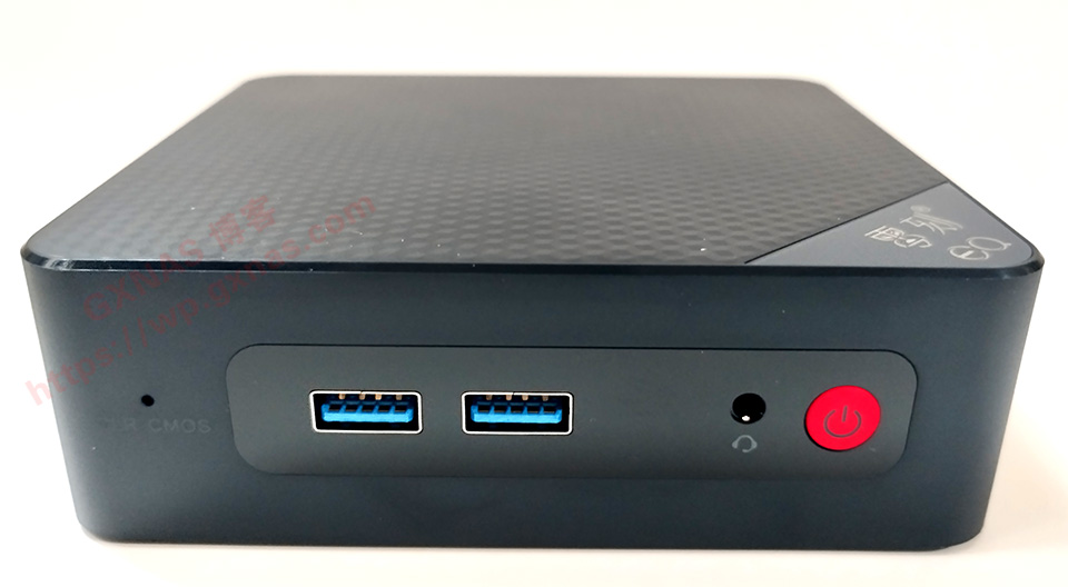 6、主机正面很简捷,从左到右分别为CMOS重置键、两个USB3.2 Gen2接口、耳机插口、电源开关;