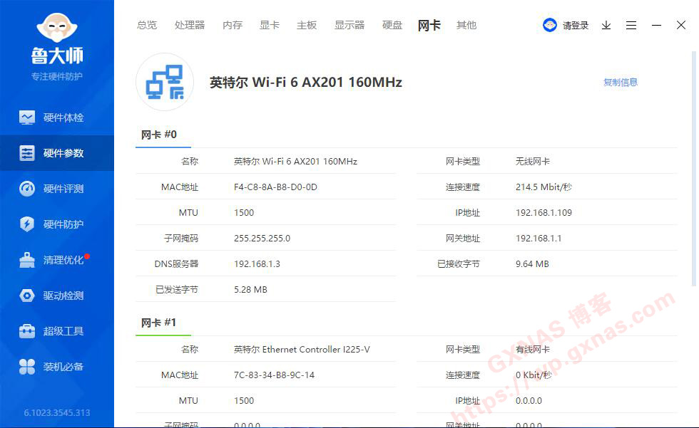 5、鲁大师检测的型号是AX201,实际上无线网卡采用的Intel  AX101,支持WIFI6  160MHz;