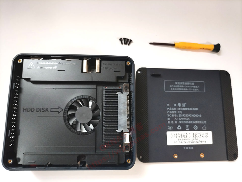 1、通过配套的螺丝刀,轻轻松松地就把底部四颗螺钉取出来;