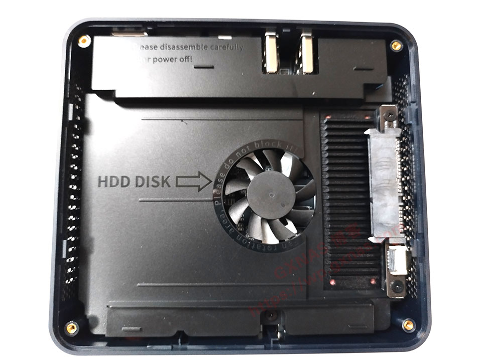 2、打开盖子,发现内部做工很精致,看到有一个2.5寸硬盘位,并且专门配了一个硬盘散热器,为硬盘提供了稳定的散热功能,不得不说这个设计想得真周全;