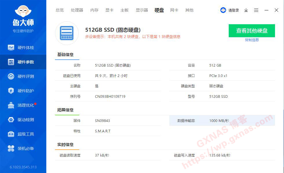 4、硬盘为512GB NVME固态硬盘,累计使用2小时,非常新;
