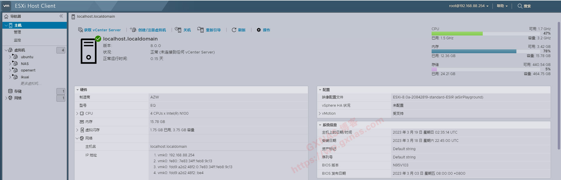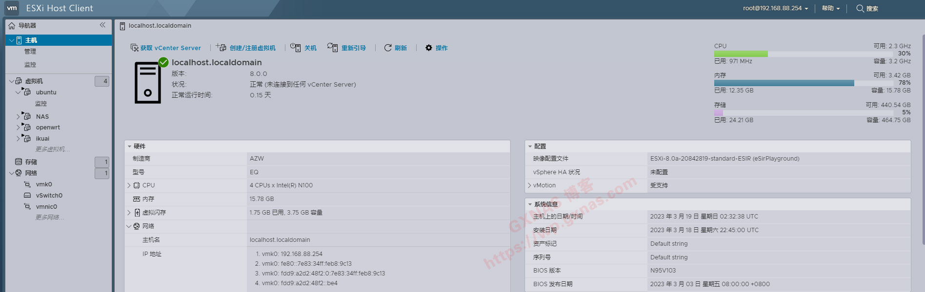 1、根据朋友的需求,给他安装了ESXI8.0用来做底层虚拟化环境,然后在ESXI里面安装爱快软路由、OpenWrt软路由、NAS、Linux系统ubuntu等多个系统同时运行,可以看到当前CPU占用率为30%;