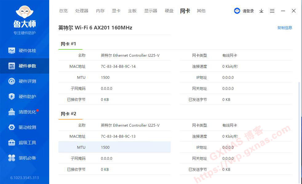 6、两个有线网卡型号均为Intel  i225-v,速率为2.5GB;