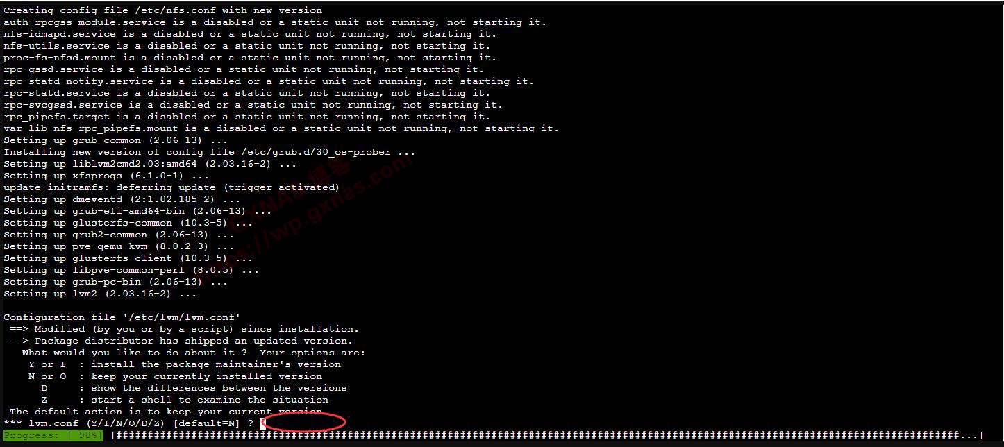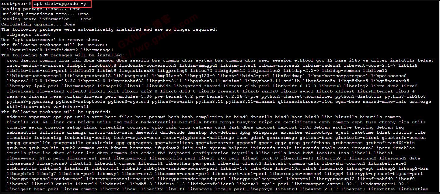 14、输入命令apt dist-upgrade -y回车,开始升级PVE8.0;)